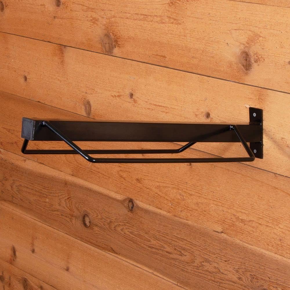 The Easy-Up Single Mount Saddle Rack is a simple and durable solution for safely and properly storing your saddle in your tack room. With a universal design, this mounted saddle rack can hold any type of saddle securely. Coated in a black finish, it adds a polished look to your storage area. The saddle rack is easy to mount and includes the hardware required for installation. Measuring 4.5" H x 23.5" L x 10.5" W, this rack is designed to fit your saddle perfectly. For additional storage, you can add the Dura-Tech Saddle Rack Storage Compartment (Item #41415) that attaches underneath the saddle racks, providing extra space for your tack room essentials.