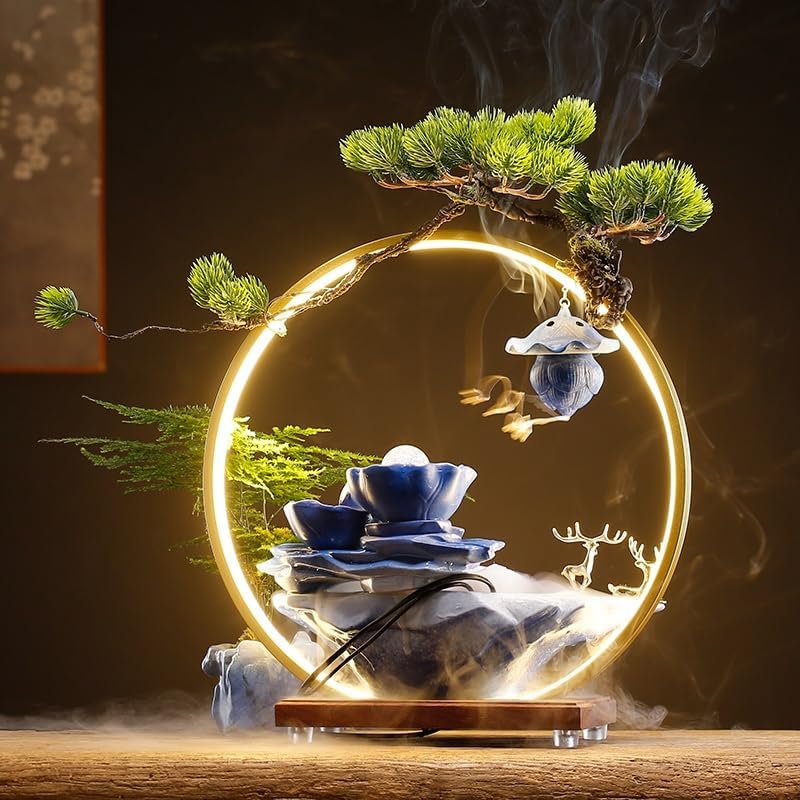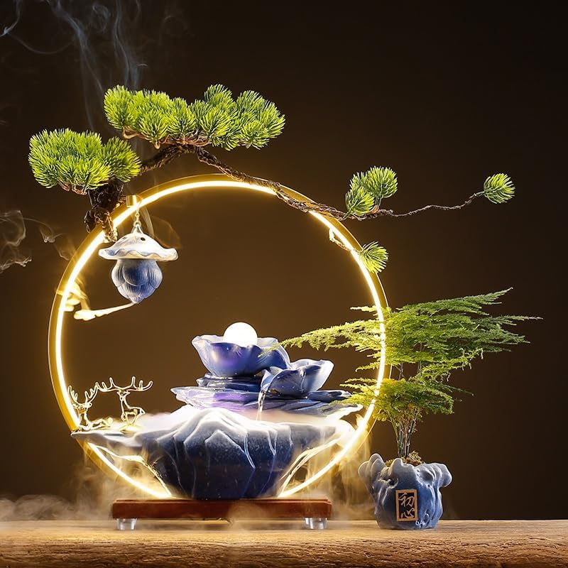 The desktop fountain is a wonderful piece of soothing interior decoration that can add value to any space and will surely surprise your guests. It is also a perfect gift. Product name: Desktop fountain Product material: ceramic + wood + light ring Product packaging: Desktop fountain * 1 (product does not include plants) Notes: Please confirm the product size and color before purchasing Products other than the products shown in the main picture are for display only and are not included. Due to differences in lighting, display and personal color, there may be color differences between the actual product and the photo. Please refer to the actual product. The above data is for reference only. The size is measured manually and there will be an error of 0-2cm. Please refer to the actual product. Thank you.