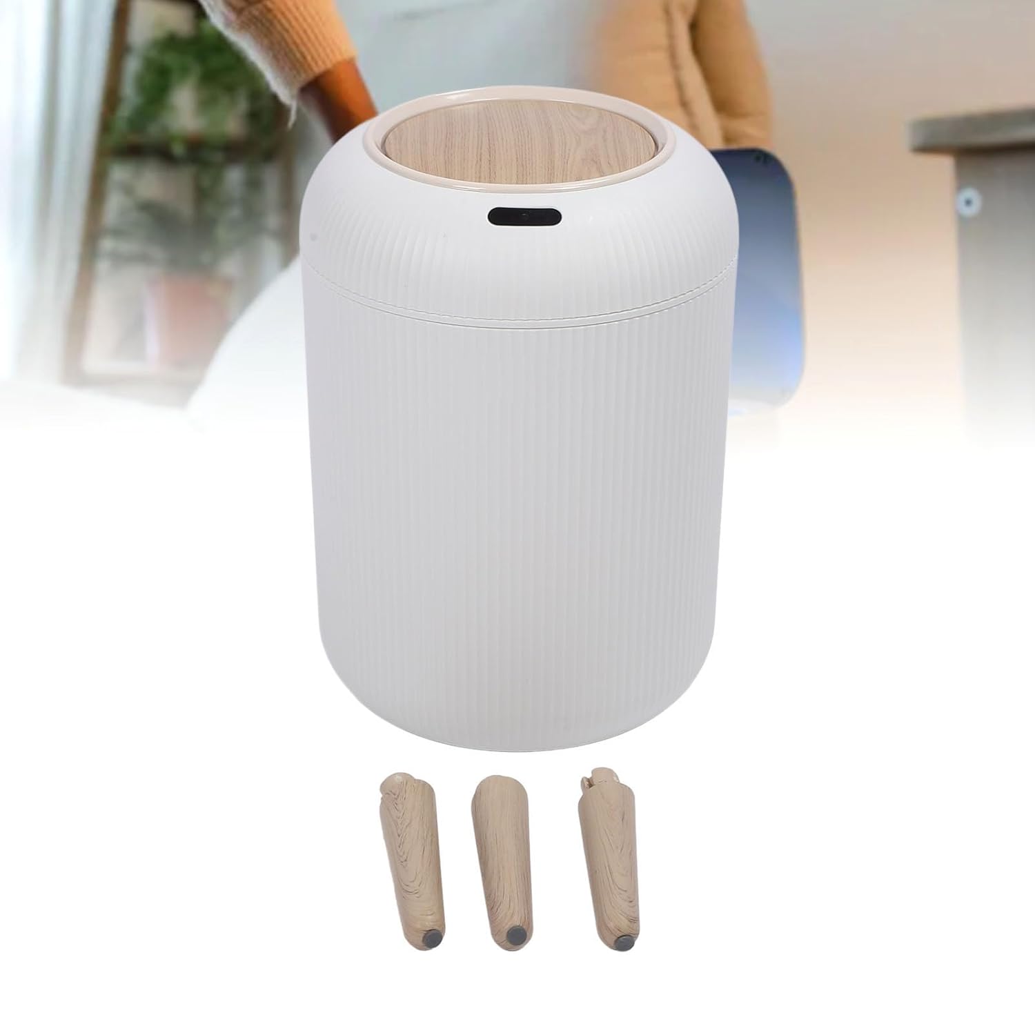 1. Motion Sensor Trash Can: Our motion sensor trash can adopts advanced automatic sensing technology. If your hand stays around the infrared motion sensor, the lid will remain open, providing a comfortable user experience. If the sensor does not detect any movement, the lid will automatically close after 5 seconds. 2. Versatile Waste Solution: Suitable for small waste like paper, coffee grounds, or fruit peels, this plastic trash can pairs excellently with reusable shopping bags for effective waste management. 3. Smart Kitchen Compost Bin: An essential for any kitchen, this lidded smart trash can offers motion sensor use, suitable for handling eggshells, spills, and kitchen messes without touching anything. 4. Modern Nordic Design: Featuring a wash and modern Nordic design, our trash can offers a more attractive alternative to traditional bins, enhancing the aesthetic appeal of any space. 5. Space Saving Design: Suited for bathrooms, kitchens, RVs, and laundry rooms, this space saving trash can fits seamlessly into various environments, optimizing functionality without compromising . Spec: Item Type: Smart Sensor Wastebasket Material: Plastic Power Type: 2 x AA Dry Batteries (not included) Weight: Approx. 1343.00g / 47.37oz How to Use: 1. Remove the sensor bucket cover and open the battery compartment cover on the back, insert the batteries, pay attention to the and negative poles of the batteries, and close the battery cover. Remove the protective film on the sensor window. 2. Place your hand the sensor window, the green light will turn on and the bucket cover will open automatically; the cover will close automatically after staying open for 6 to 8 seconds. The green light will turn off, indicating the sensor function is turned off. packing list: 1 x Trash Can 3 x Bucket Legs